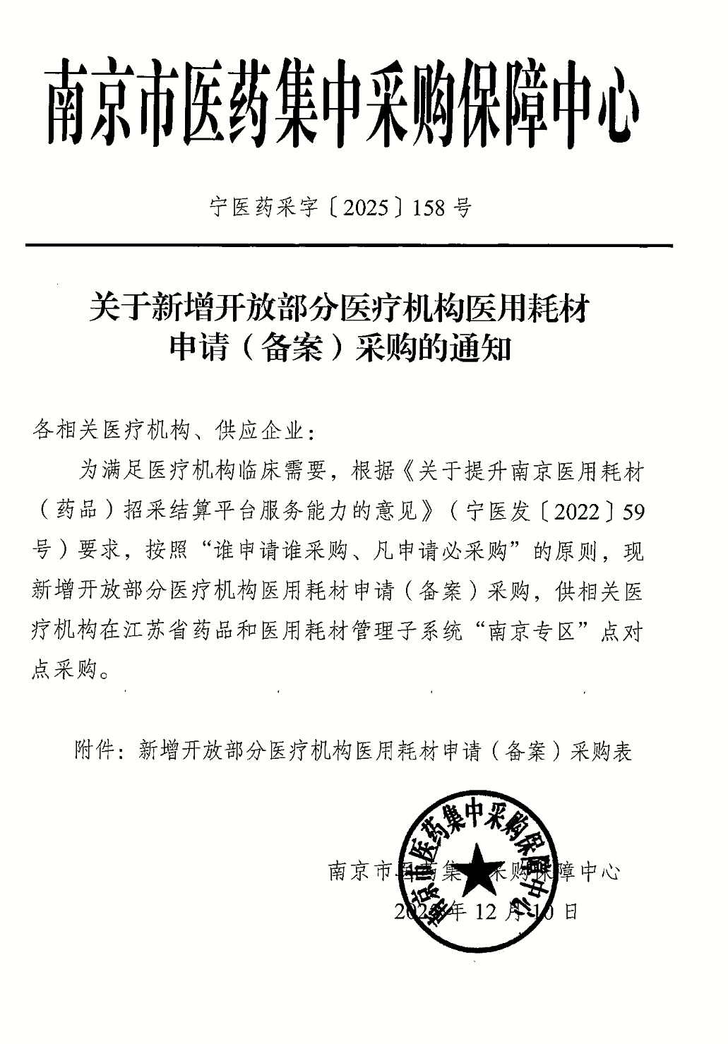 寧醫(yī)藥采字〔2025〕158號(hào)—關(guān)于新增開放部分醫(yī)療機(jī)構(gòu)醫(yī)用耗材申請(qǐng)(備案)采購的通知